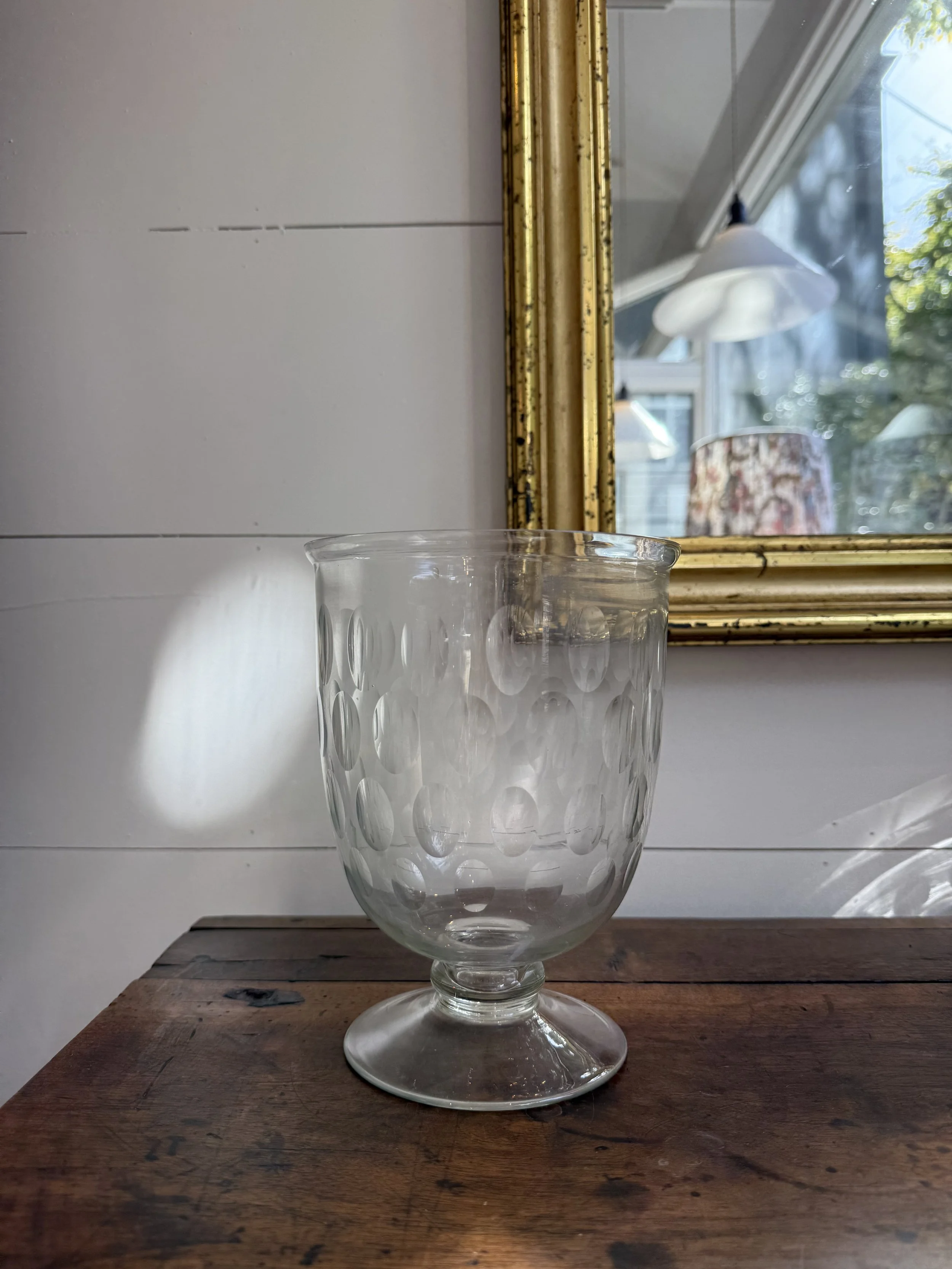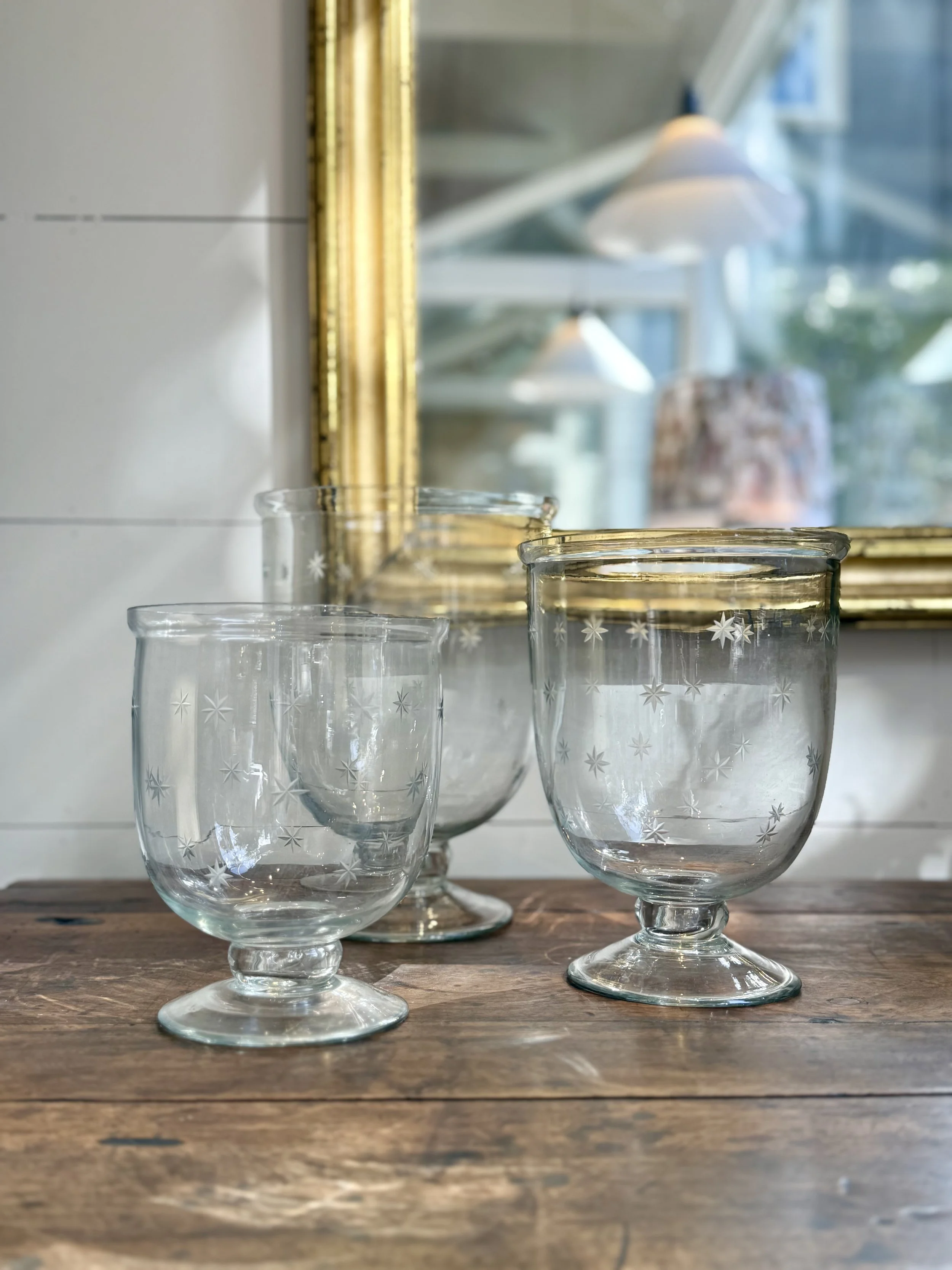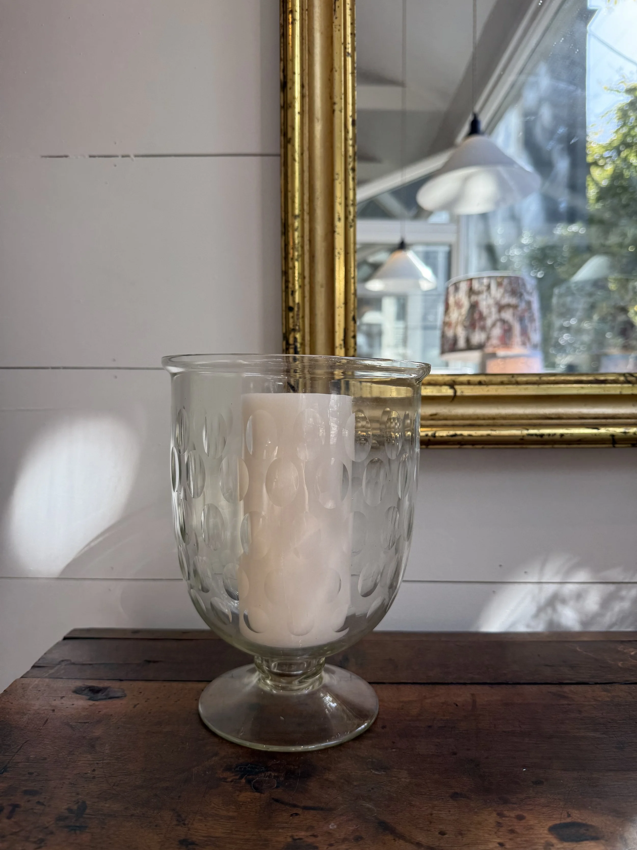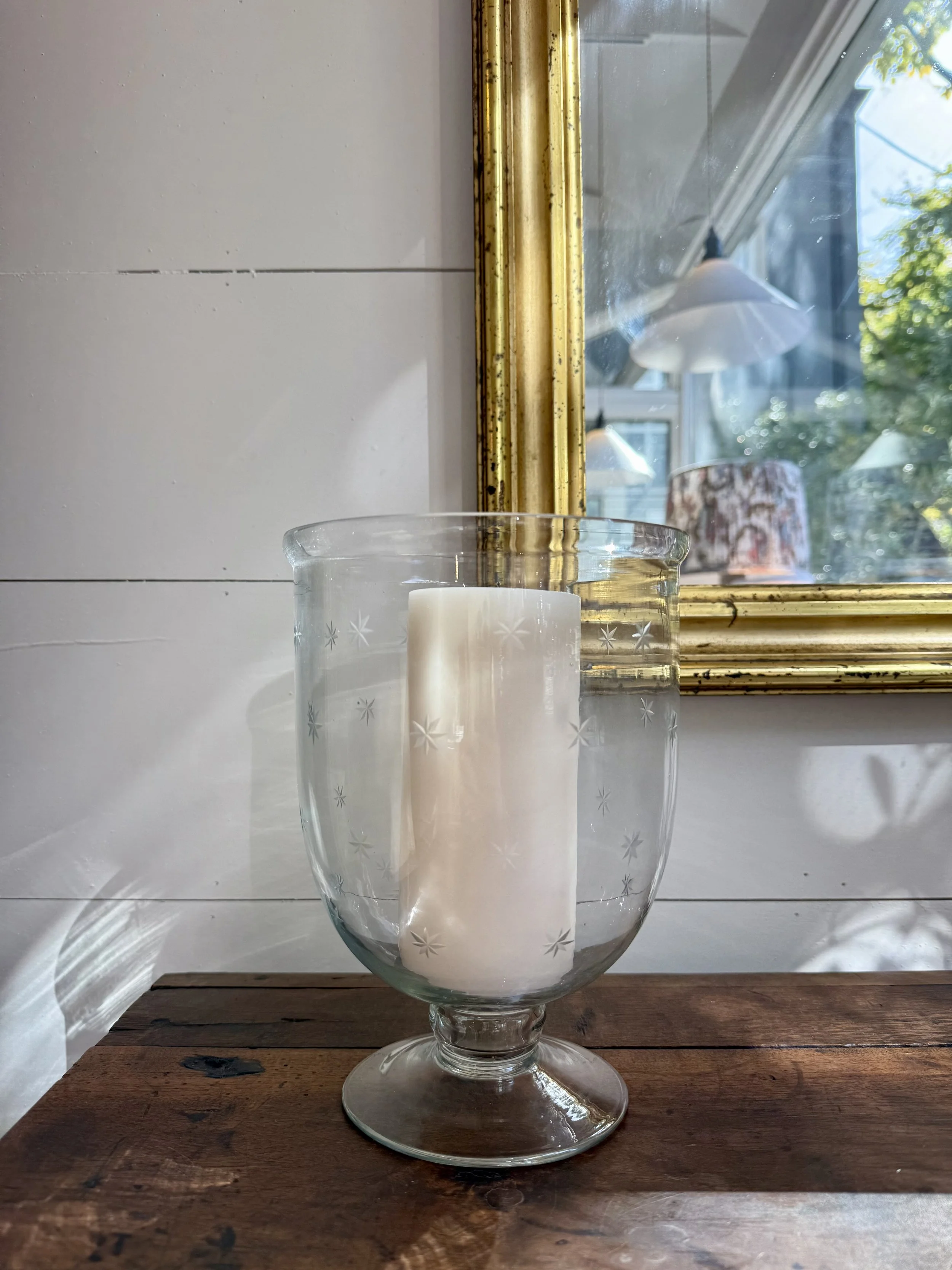 Perched on a faceted pedestal base, this tall silhouette strikes the perfect balance between airy and architectural. Ideal for mantels, dining tables, or entryways, each hurricane casts a refined glow.