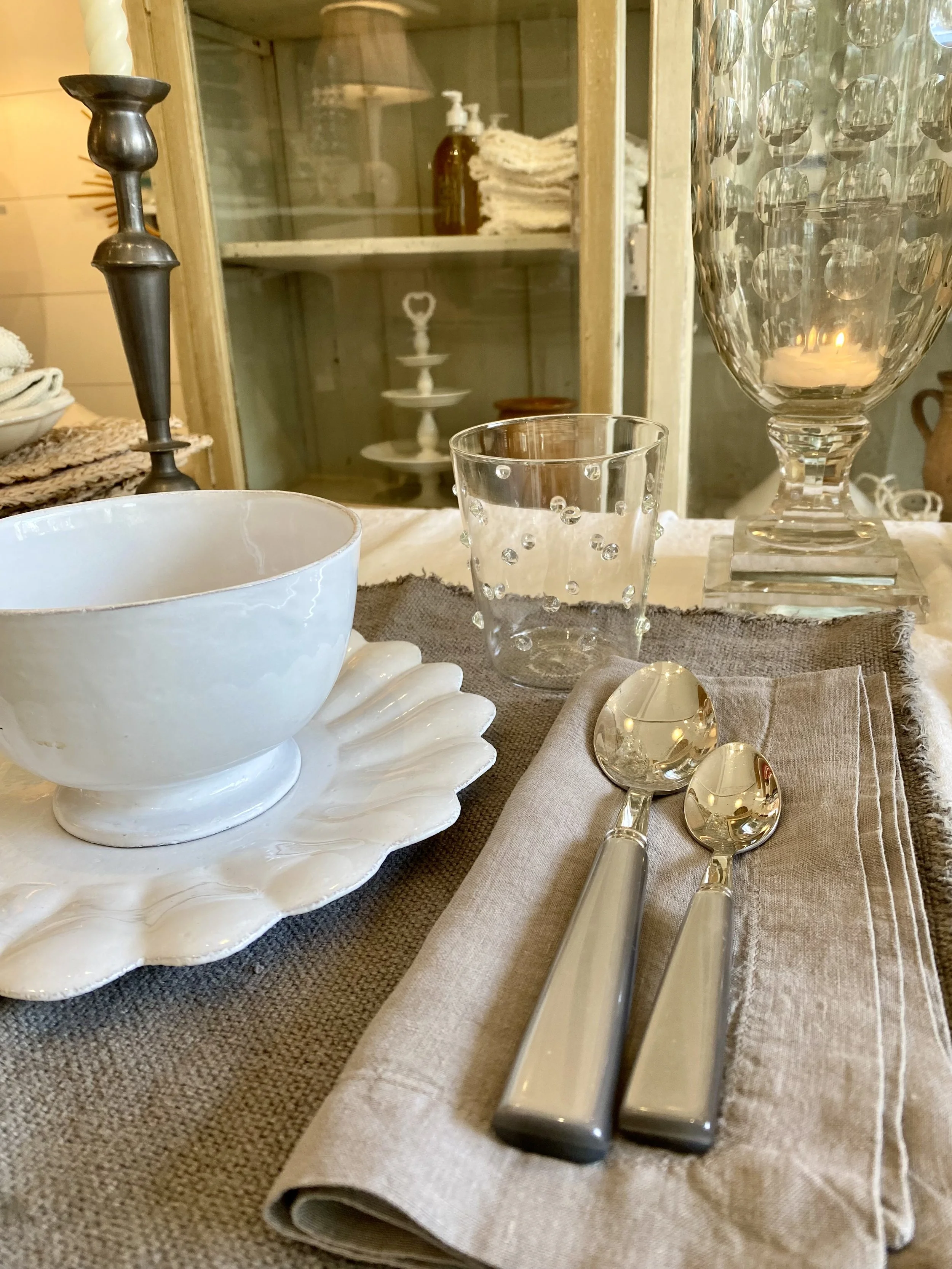 Crafted in France from a durable cotton-linen blend, this absorbent tea towel is a kitchen essential. Its classic design features woven stripes and selvedge edges for a clean, timeless look. Soft on hands and tough on messes—perfect as a sustainable alternative to paper towels or a stylish host gift.